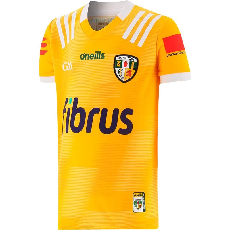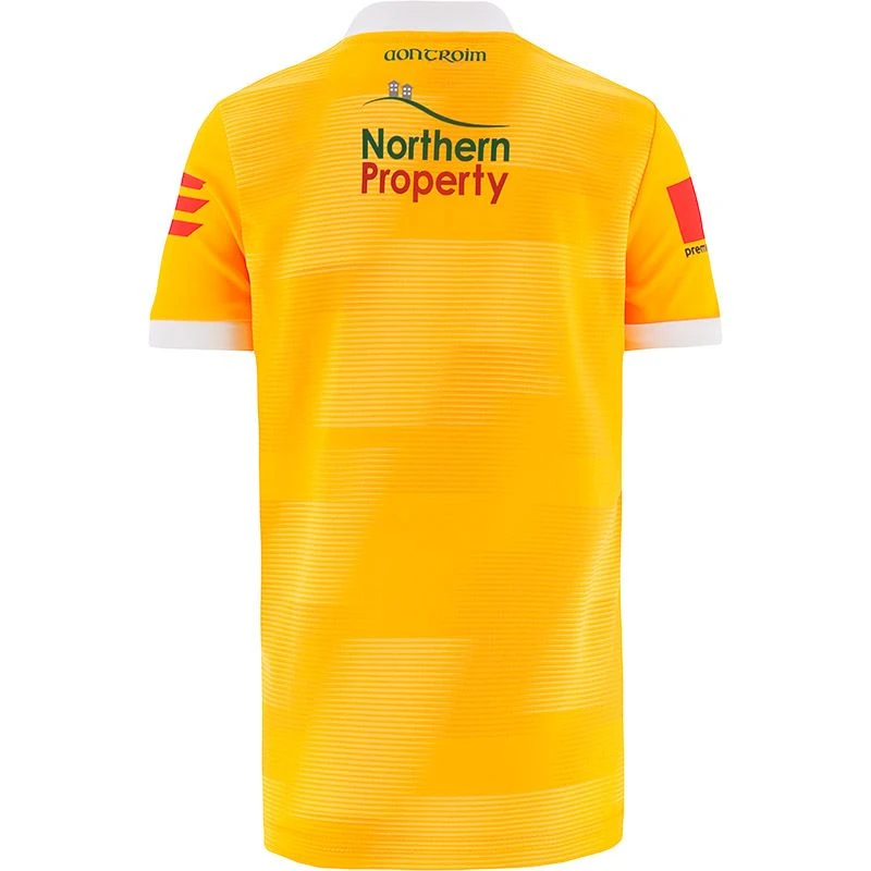 Cheer on Antrim with their latest home jersey. The Official Antrim GAA Kids’ Home Jersey is made from our high-performance koolite fabric with catch, move and release nano-technology that transports moisture away from the skin. The jersey features the Antrim GAA crest and sponsor logo.