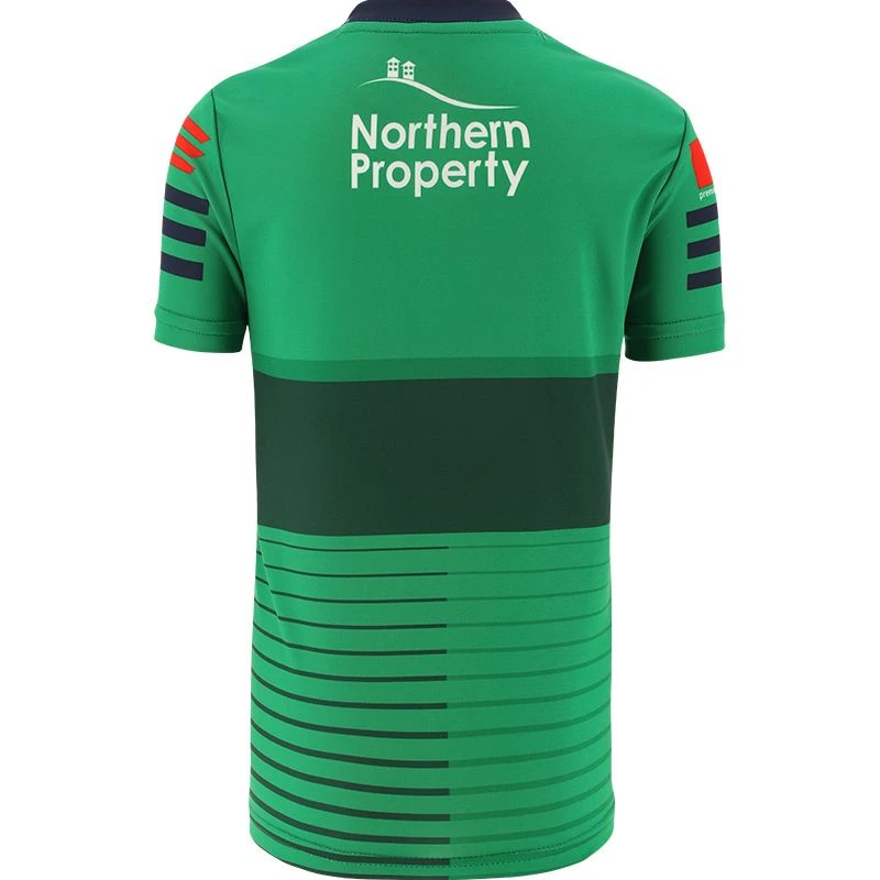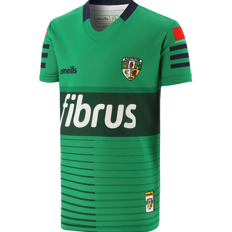 Cheer on Antrim GAA with the county’s latest training top. The Official Kids’ Antrim GAA training top is made from high-performance fabric with catch, move and release nano-technology that transports moisture away from the skin. Featuring the official Antrim crest and sponsor logo on front and back.