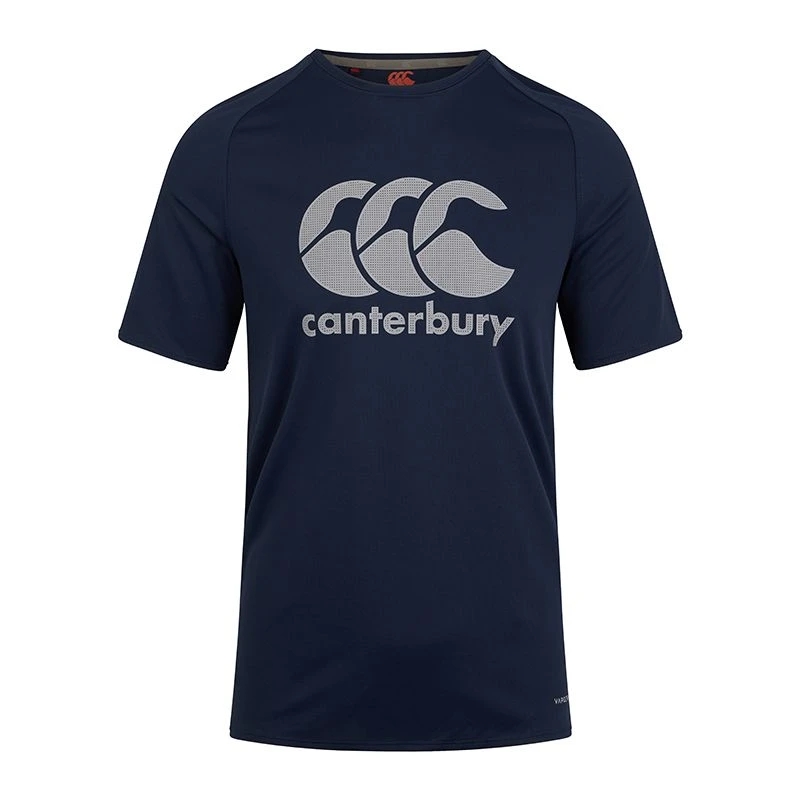 Look stylish on or off the rugby pitch in this casual men’s logo t-shirt. Made with VapoDri technology, this t-shirt keeps you dry and comfortable by reacting to your changing body temperature, with a mesh back panel absorbing moisture to keep you cool when you need it the most. The lowered back hem means you don’t have to worry about the t-shirt riding up during activity, while the low profile collar and raglan sleeve shape are designed to give a great fit for the rugby physique. Sporting a large Canterbury logo in the middle of the chest, this simple design lets you show off their love of the game with pride and passion.