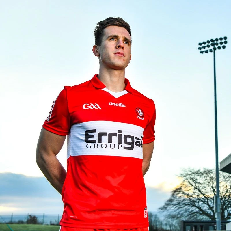 Cheer on Derry GAA with their latest away jersey. The Official Derry GAA Away Jersey is made from our high-performance koolite fabric with catch, move and release nano-technology that transports moisture away from the skin. The jersey features the Derry GAA crest and sponsor logo.