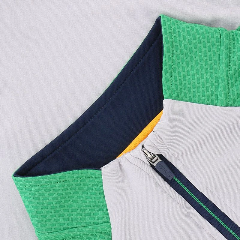 The Donegal GAA Nevada half zip has a high flex outer and is brushed with a soft inner lining for maximum comfort. Complete with zip pockets and county crest.