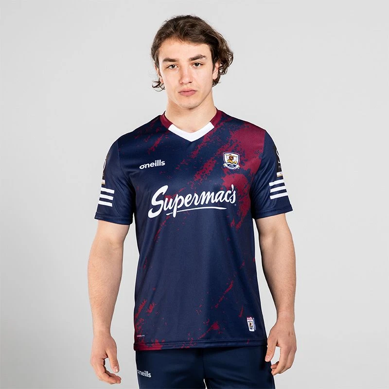 Cheer on Galway GAA Hurling with the county’s latest training top. The Official Men’s Galway GAA Hurling training top is made from high-performance fabric with catch, move and release nano-technology that transports moisture away from the skin. Featuring the official Galway crest and sponsor logo on front and back.