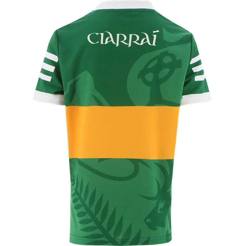 Cheer on Kerry with their latest home jersey. The Official Kerry Kids’ Camogie Home Jersey is made from our high-performance koolite fabric with catch, move and release nano-technology that transports moisture away from the skin. The jersey features the Kerry Camogie crest and sponsor logo.