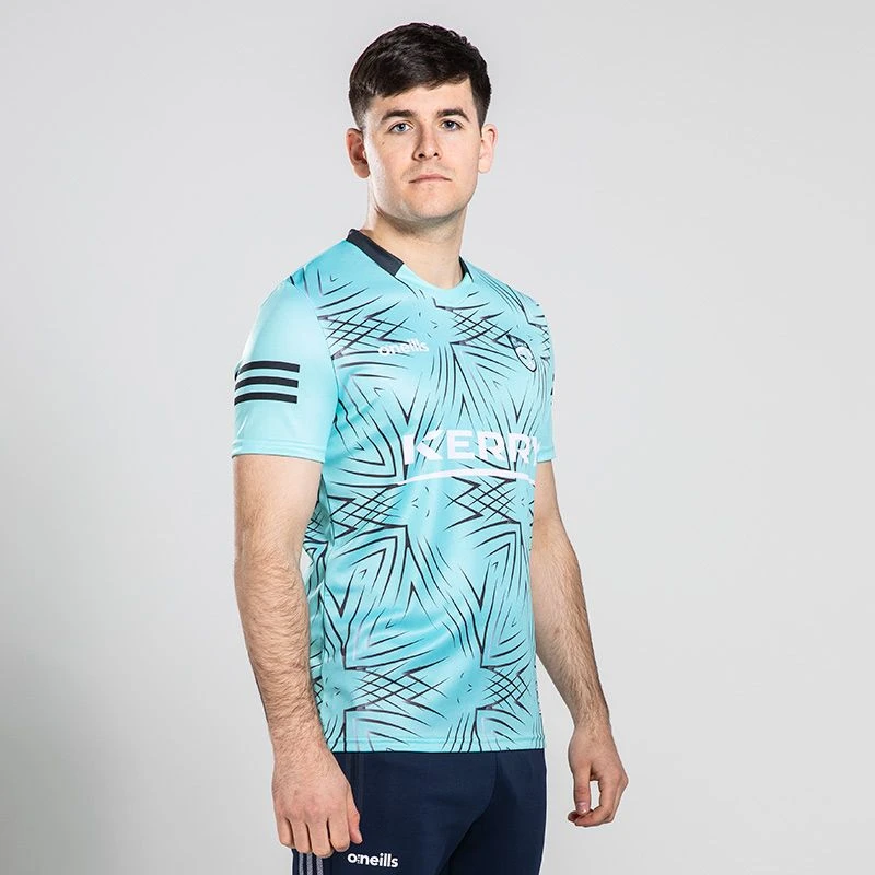 Cheer on Kerry GAA with the county’s latest training top. The Official Men’s Kerry GAA training jersey is made from high-performance fabric with catch, move and release nano-technology that transports moisture away from the skin. Featuring the official Kerry crest and sponsor logo on front.