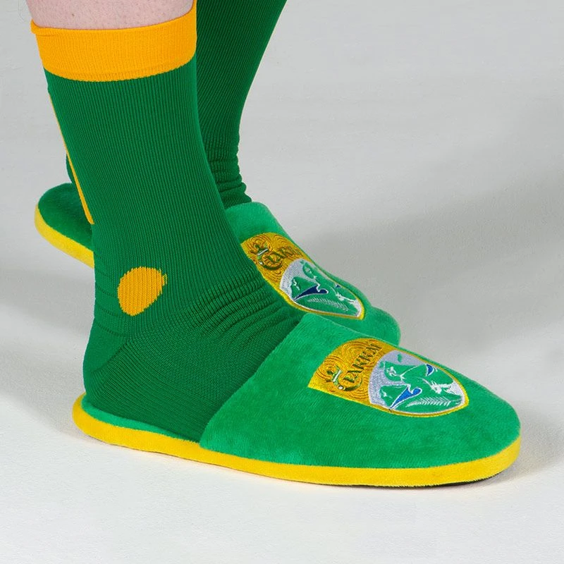 Kerry GAA slide-on slippers are crafted from a cosy fleece fabric with all-over foam padding for a comfortable, supported wear. The soles are textured for added grip and the upper is finished with an embroidered Kerry crest. A great gift for GAA fans.