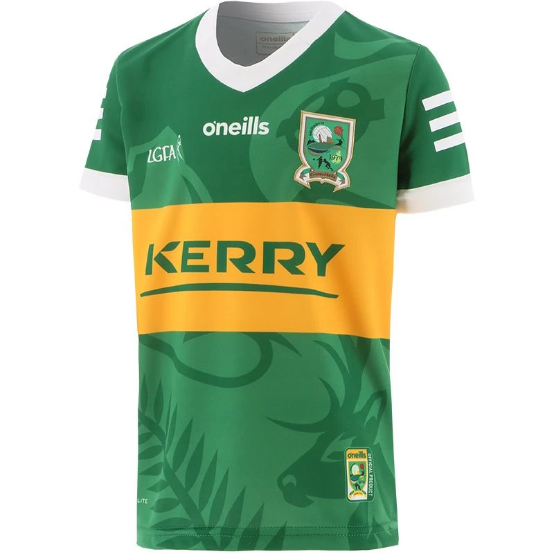 Cheer on Kerry with their latest home jersey. The Official Kerry LGFA Kids’ Home Jersey is made from our high-performance koolite fabric with catch, move and release nano-technology that transports moisture away from the skin. The jersey features the Kerry LGFA crest and sponsor logo.