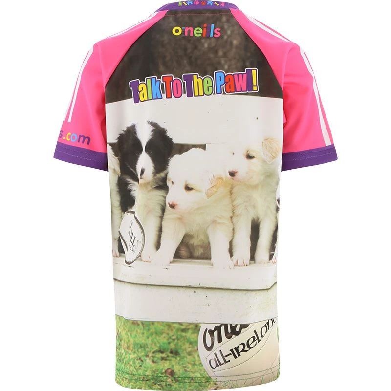 The Kids’ Talk to the Paw O’Neills ploughing jersey is super fun with an image of three adorable puppies on the front and back. ‘Talk to the Paw’ is printed on the back in a rainbow of colours.