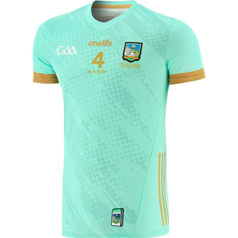 Celebrate Limerick GAA All-Ireland Hurling win with the Official Champions Goalkeeper Jersey. The county crest is displayed proudly with “GAA Hurling All Ireland Senior Champions 2023” printed below and “4 In A Row” printed on the back and front. Crafted from our high-performance Koolite fabric, this jersey utilises catch, move and release nano-technology to transport moisture away from the skin.