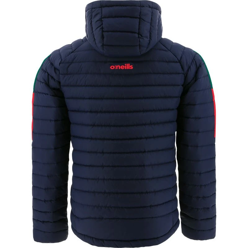 The Kids’ Mayo GAA Peak Hooded Padded Jacket is the perfect extra layer to protect you from the cold and wet weather. The quilted body and cuffs are designed to trap heat to keep you warm. Featuring two zip pockets to keep your belongings secure and the county crest.