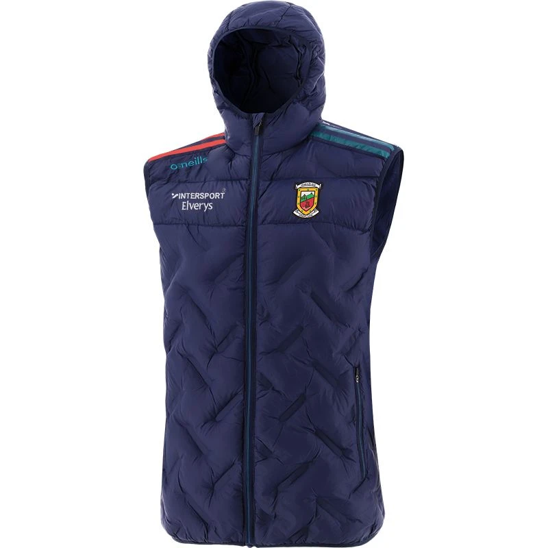 The Men’s Mayo GAA Dolmen Hooded Padded Gilet is the perfect extra layer on match days to pull on over a half zip or sweatshirt. The padded body is water repellent, offering essential protection from the elements with a hood to shield you during wet weather.