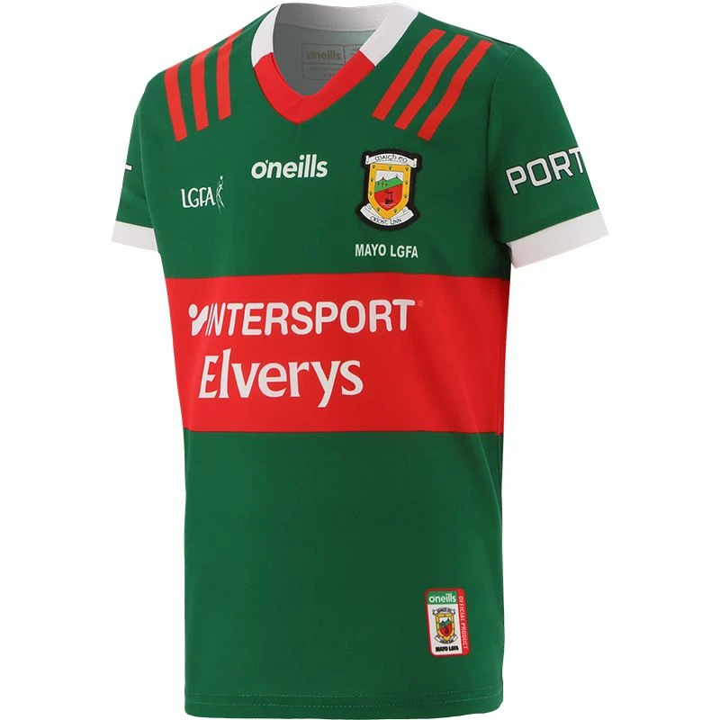Show your support for Mayo LGFA and proudly pull on your county colours with the Official kids’ Mayo Home Jersey 2023. Crafted from our high-performance Koolite fabric, this jersey utilises catch, move and release nano-technology to transport moisture away from the skin. The jersey features the Mayo LGFA crest and sponsor logo.