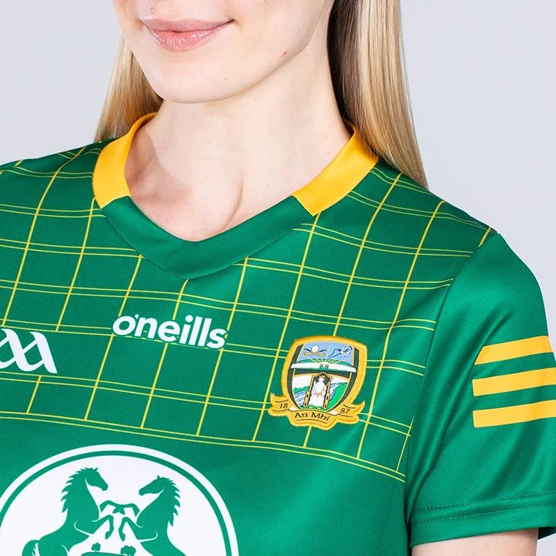 Cheer on Meath GAA with their latest home jersey. The Official Meath GAA Women’s Home Jersey is made from our high-performance koolite fabric with catch, move and release nano-technology that transports moisture away from the skin. The jersey features the Meath GAA crest and sponsor logo.