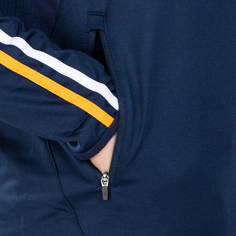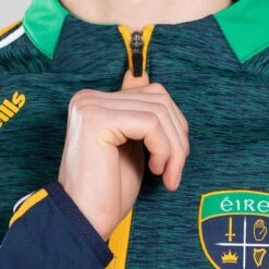 Pull on an extra layer with the Men’s Ohio Éire Brushed Half Zip Top. The soft brushed inner and high flex outer provide warmth and comfort, while the two zip pockets are ideal for keeping your belongings safe. Complete with Éire crest on the chest and stripe detail on the sleeve.