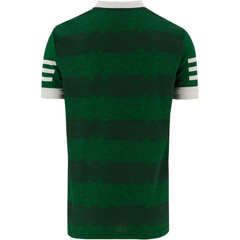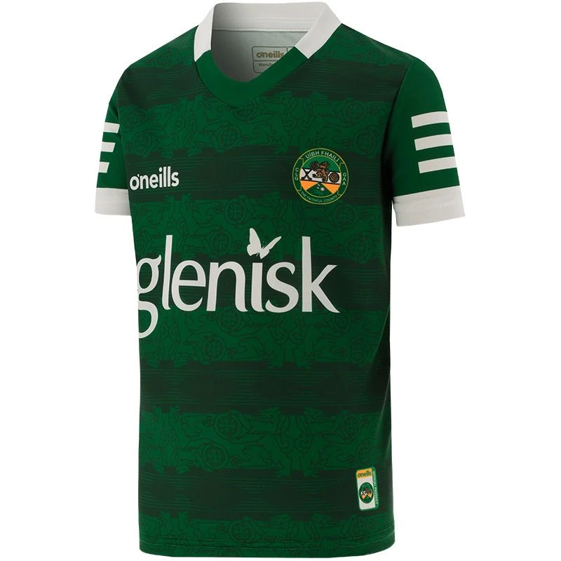 Cheer on Offaly Hurling with the county’s latest training top. The Official Kids’ Offaly Hurling training jersey is made from high-performance fabric with catch, move and release nano-technology that transports moisture away from the skin. Featuring the official Offaly Hurling crest and sponsor logo on front and back.