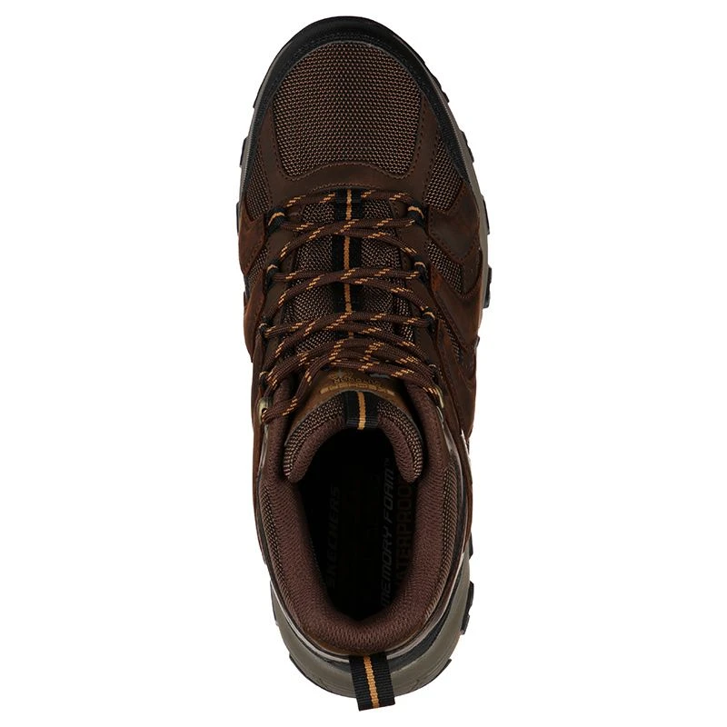 Choose your own adventure in rugged capable outdoor style and comfort with the SKECHERS Relaxed Fit®: Selmen – Relodge boot. Durable leather, synthetic and mesh fabric in a lace up casual comfort hiking style ankle height waterproof boot with stitching and overlay accents. Air Cooled Memory Foam insole.