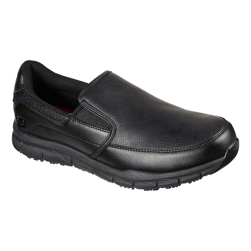 Work smarter and more comfortably with the Skechers Work Relaxed Fit®: Nampa – Groton SR shoe. This slip-resistant sneaker features a slip-on smooth synthetic upper with cushioned Memory Foam insole.
