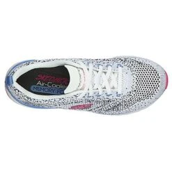 Get into the habit of looking great and feeling the cushioned comfort of the SKECHERS Ultra Groove shoe. Soft woven flat knit mesh fabric upper in a lace up sporty comfort training sneaker with shock absorbing Ultra Groove midsole and Air-Cooled Memory Foam insole.