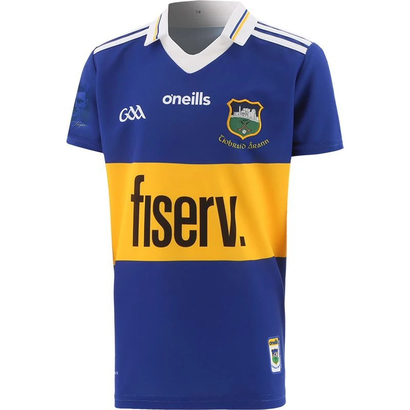 Cheer on Tipperary with their latest home jersey. The Official Tipperary GAA Kids’ Home Jersey is made from our high-performance koolite fabric with catch, move and release nano-technology that transports moisture away from the skin. The jersey features the a portrait on Michael Hogan on the right sleeve, a retro style collar and Tipperary GAA crest.