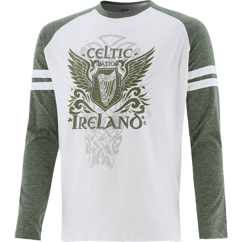 The Trad Craft Men’s Celtic Wings Long Sleeve t-shirt features a large printed celtic design with wings on the front.