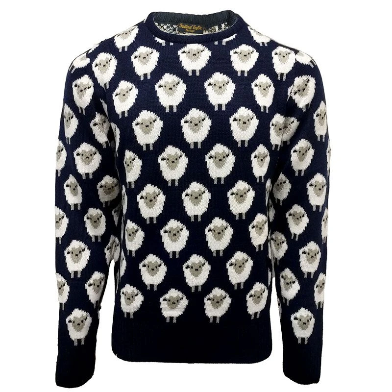 The Trad Craft Sheep Knit Jumper features an all-over sheep pattern with one black sheep within the design. This soft knit jumper is the perfect Irish gift.